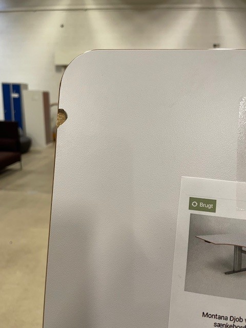 Bemærk! Mindre hak i forkant samt en lidt større på højre kant. Desuden er der hul fra bordskærm i hvert hjørne.