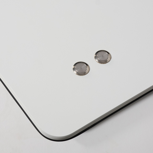 "Montana HiLow elektrisk hæve-sænkebord i hvid med afrundede hjørner og kanter, med beskyttende gummikant.