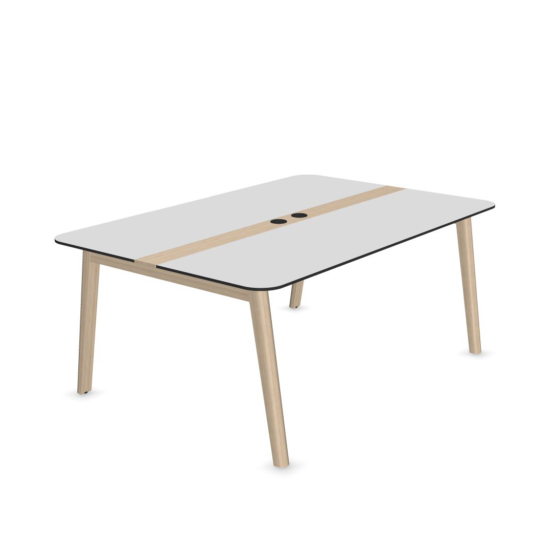 "Mødebord i moderne nordisk stil. Kombinationen med HP laminat og hvidpigmenteret massiv ask spiller flot sammen og karaktiserer Una Wood serien fra Narbutas.