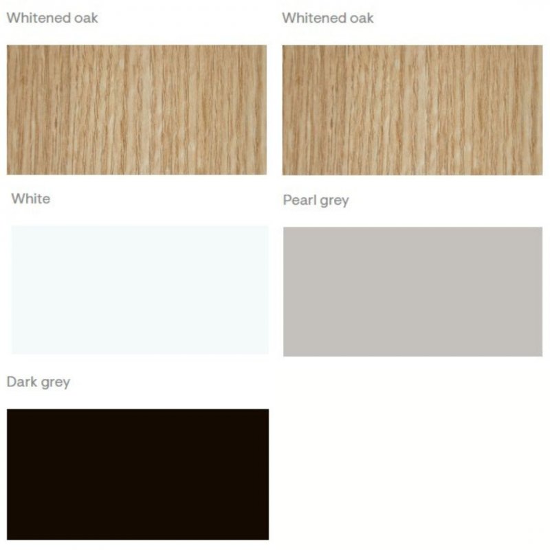 Denne variant har en elegant eg-laminat på ydersiden og lysegrå Berta polstring på indersiden.
