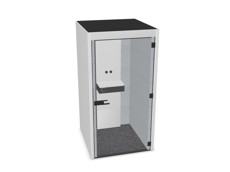 Mødeboksen tilbyder flere forskellige lysindstillinger, et ventilationssystem, højbord, strømforsyning og en dør i hærdet glas. Standardleveringen inkluderer en højrevendt dør, men den kan også fås venstrevendt. For øget sikkerhed kan en brandalarm tilkøbes.