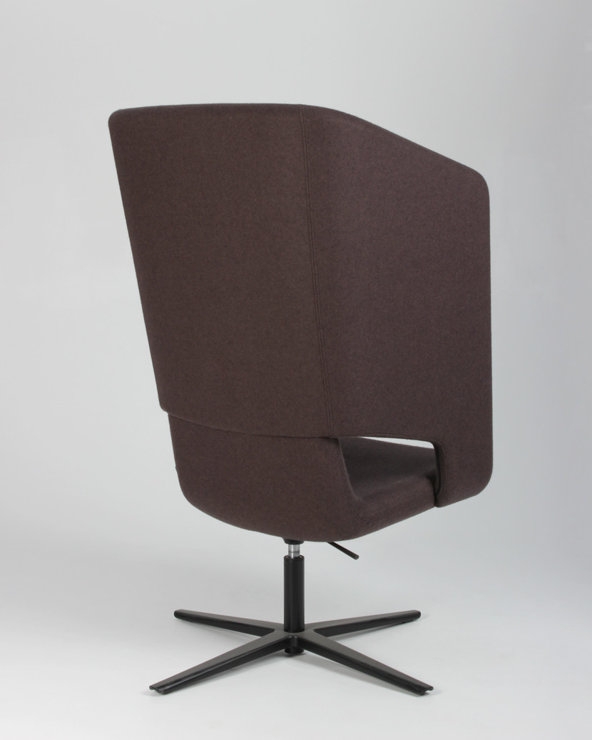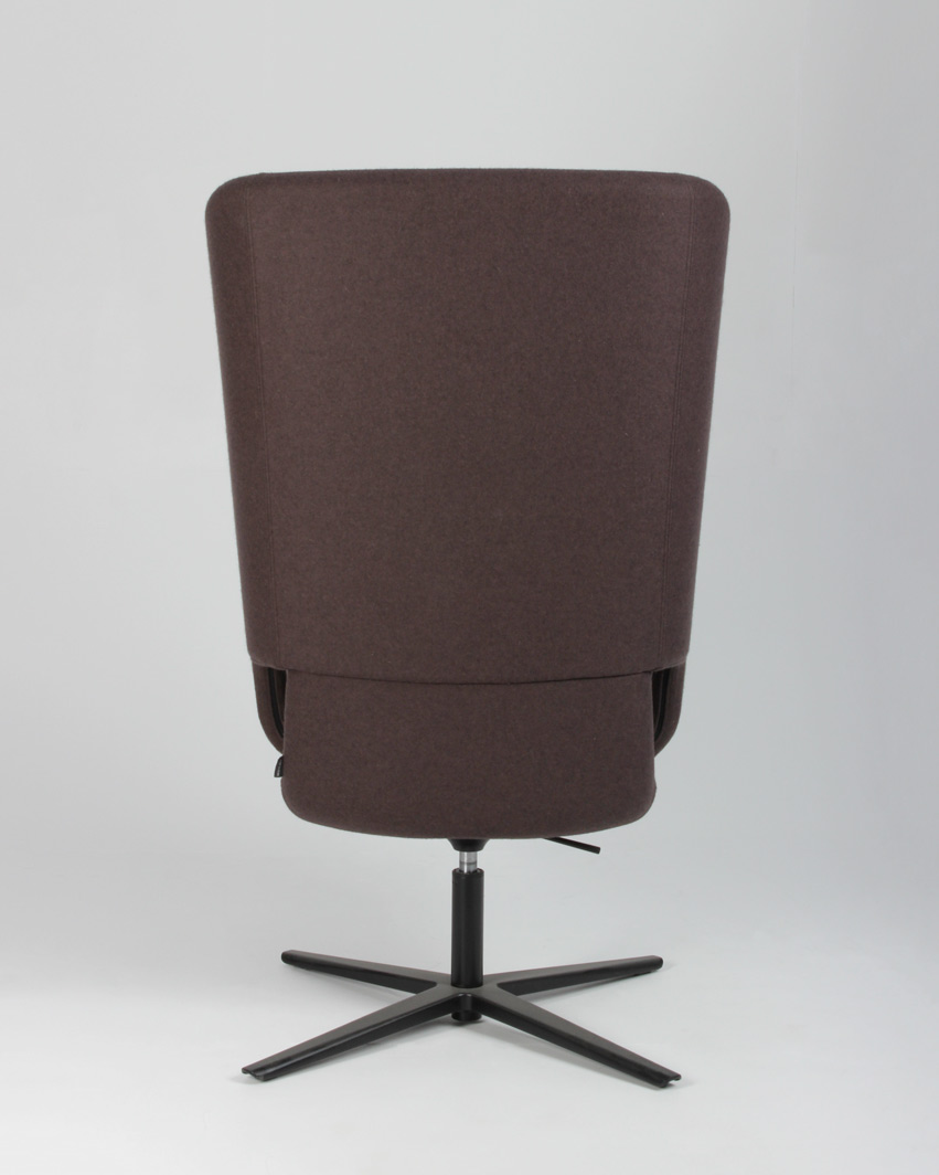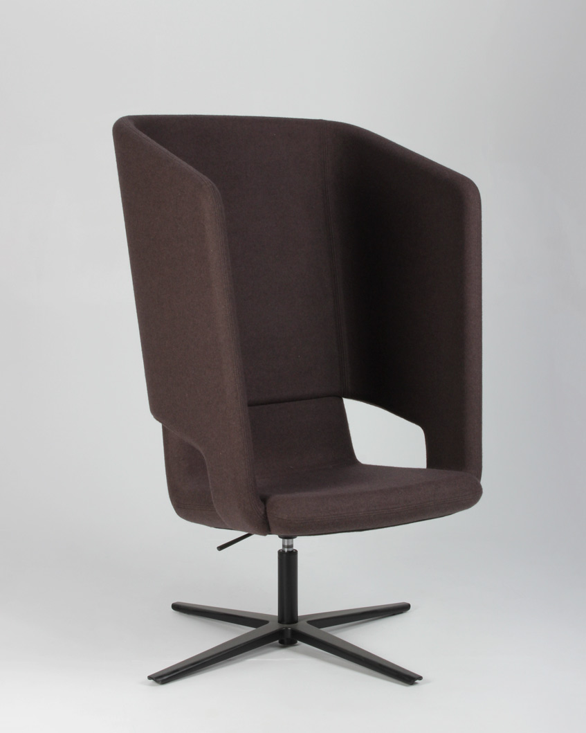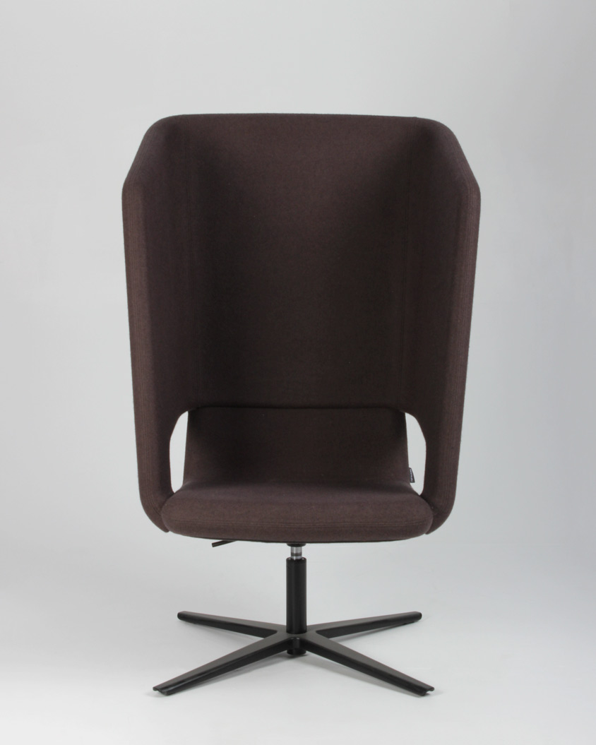 "Narbutas Twist&Sit Soft High loungestol med gaslift og drejestel. Stolen er fuldpolstret og betrukket med brunt uld og har sort drejestel. Stolen er perfekt eksempelvis i et loungeområde med rumklang og god loftshøjde, i det åbne kontorlandskab eller receptionen.