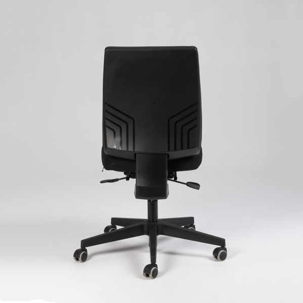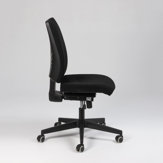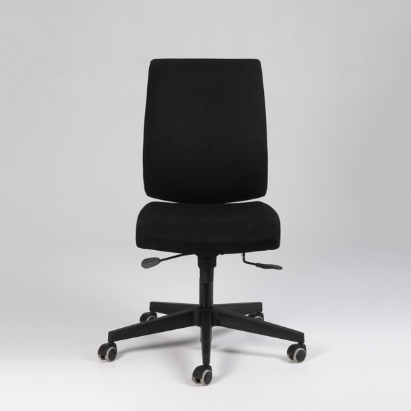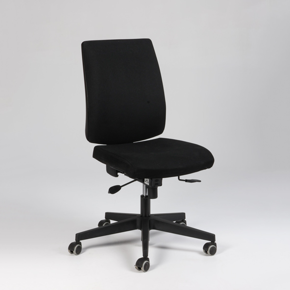 "Nowy kontorstol polstret i sæde og ryg og betrukket med sort møbeltekstil.