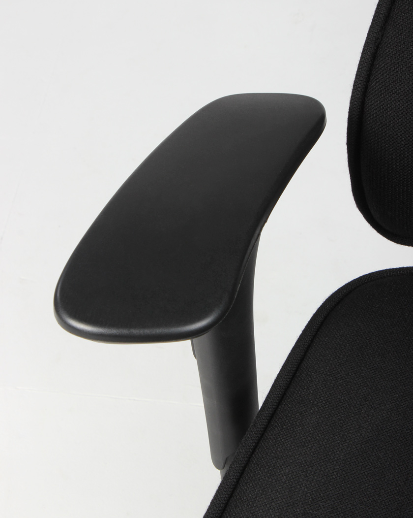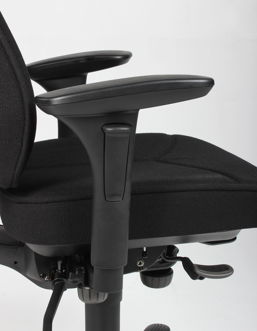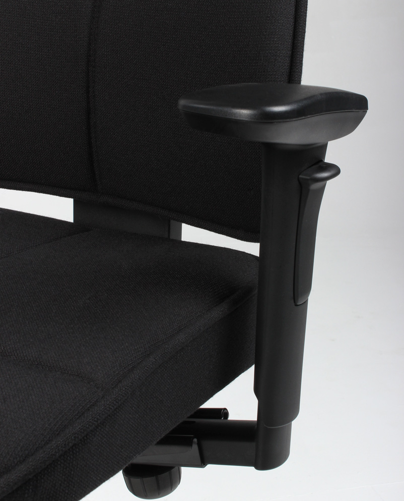 Armlænene kan reguleres i højde og bredde.