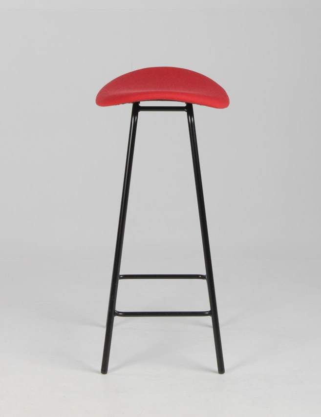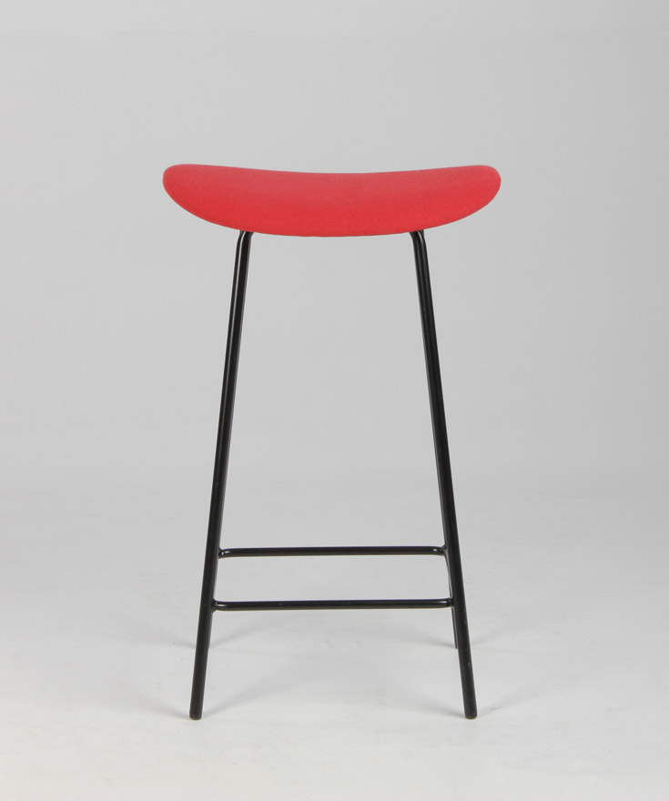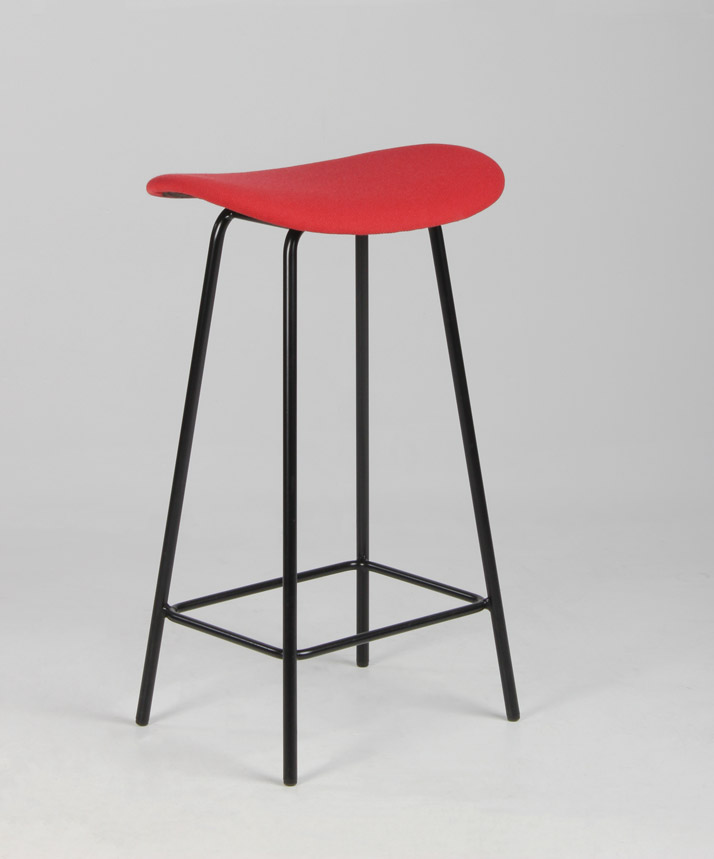 OFFECCT Cornflake lav barstol med rødt polstret sæde og matsort pulverlakeret sort stel med fodhviler.