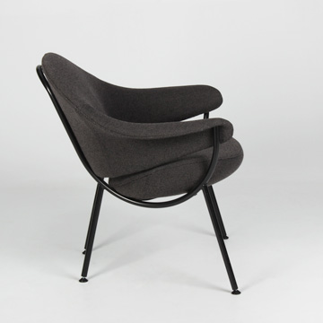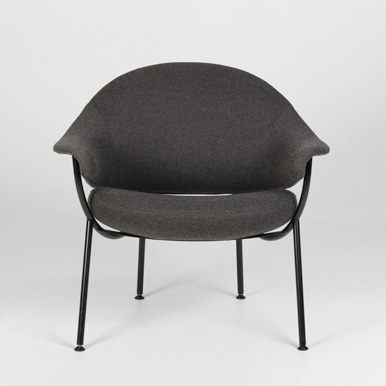"OFFECCT Murano loungestol i gråmeleret uld med ben i sort pulverlakeret stål. God siddekomfort, med fast polstring betrukket med uld.