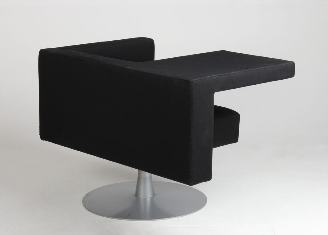 "OFFECCT Solitaire loungestol i sort fame med mat grå drejesokkel.