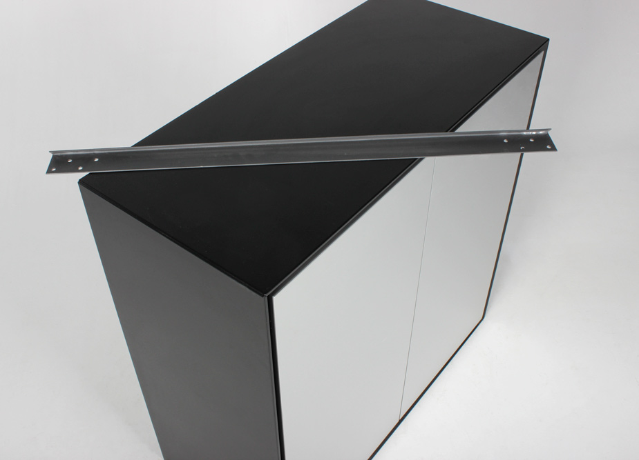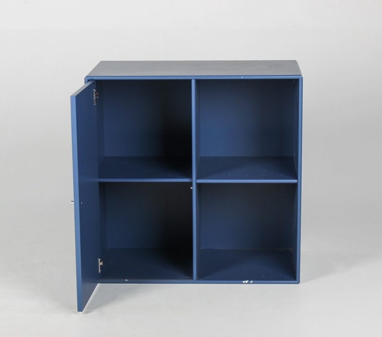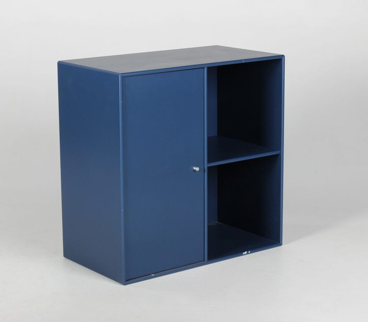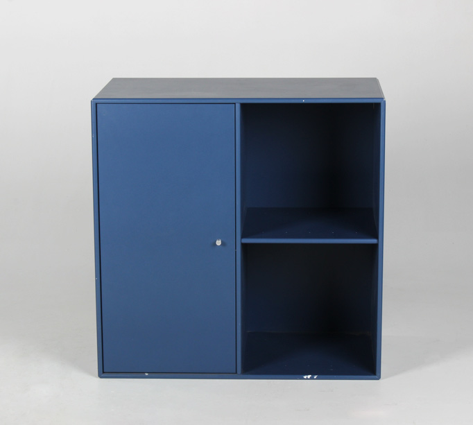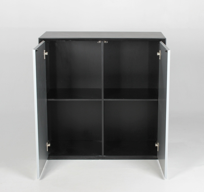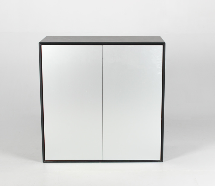 Paustian væghængt kontorskab i sort med gråmetallic-farvet push-låger.