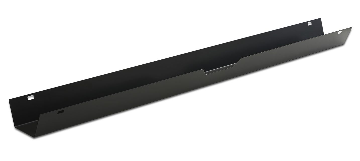 "APTO PLUS Gaia kabelbakke på 147 cm i sort (RAL9005). Med en kabelbakke monteret under hæve sænkebordet, er det nemt at holde styr på ledninger og kabler fra computer, skærme osv. Når de ligger beskyttet og samlet under bordpladen, undgår man fejlagtigt at trække dem ud, samt gulvet holdes ryddeligt og pænt herunder.