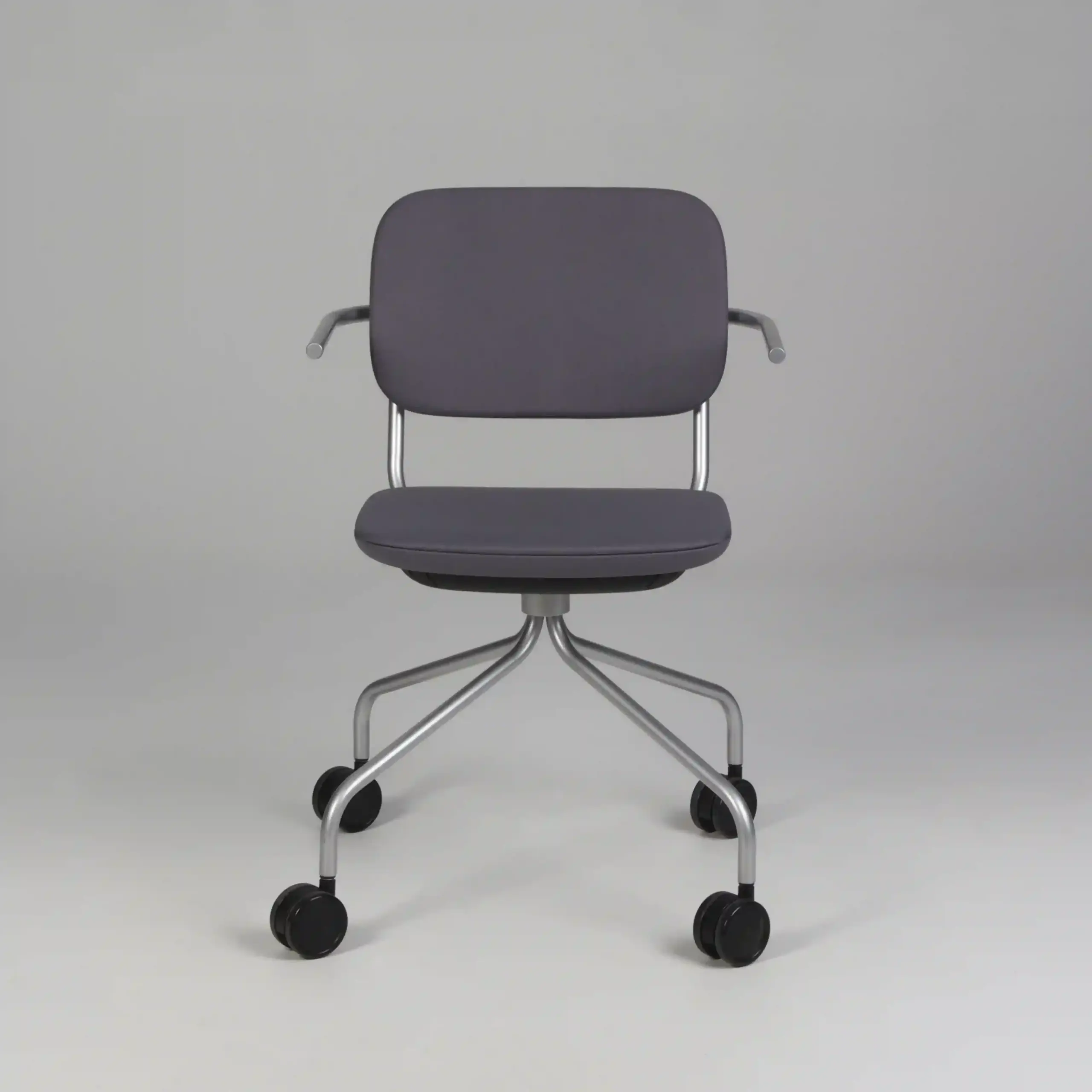 Normo 500HC stol fra Profim i lys lilla xtreme stof og satinbørstet stål – perfekt til hjemmekontoret