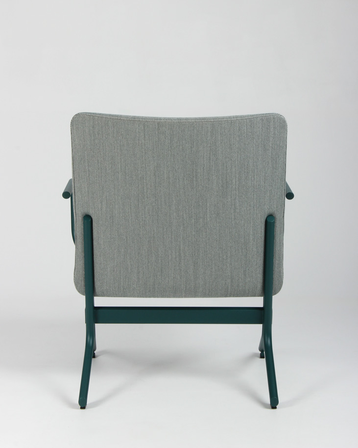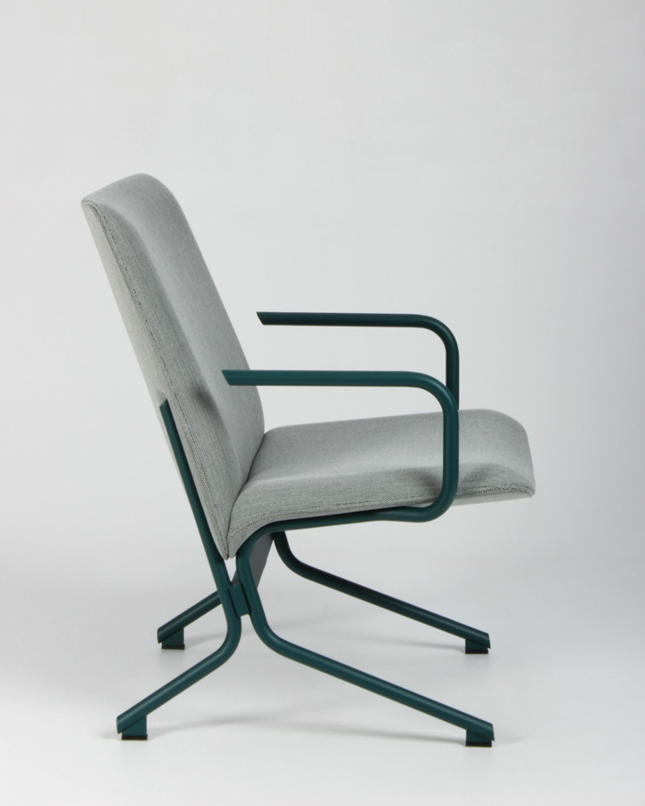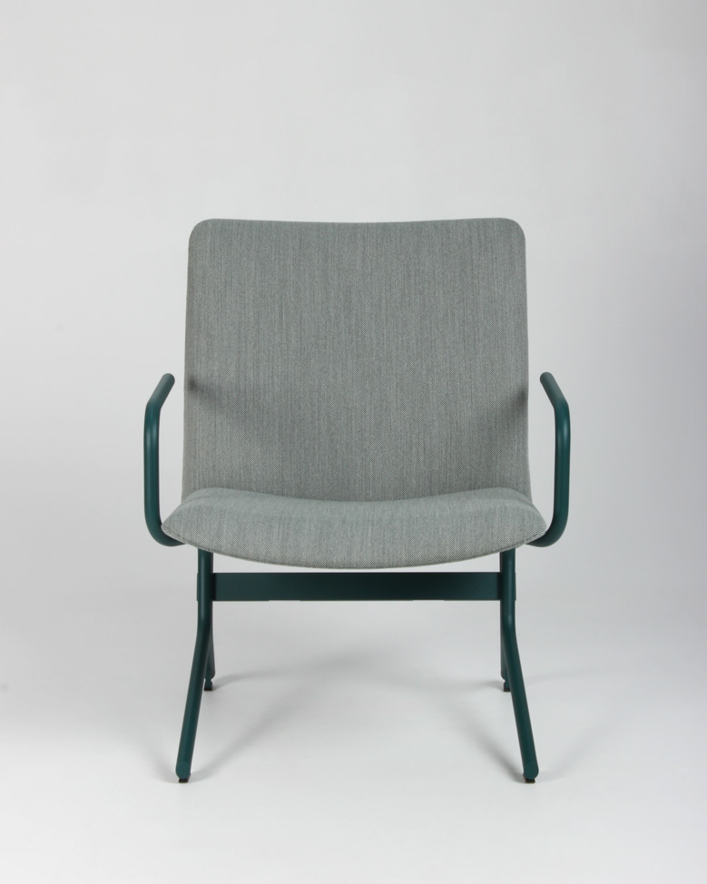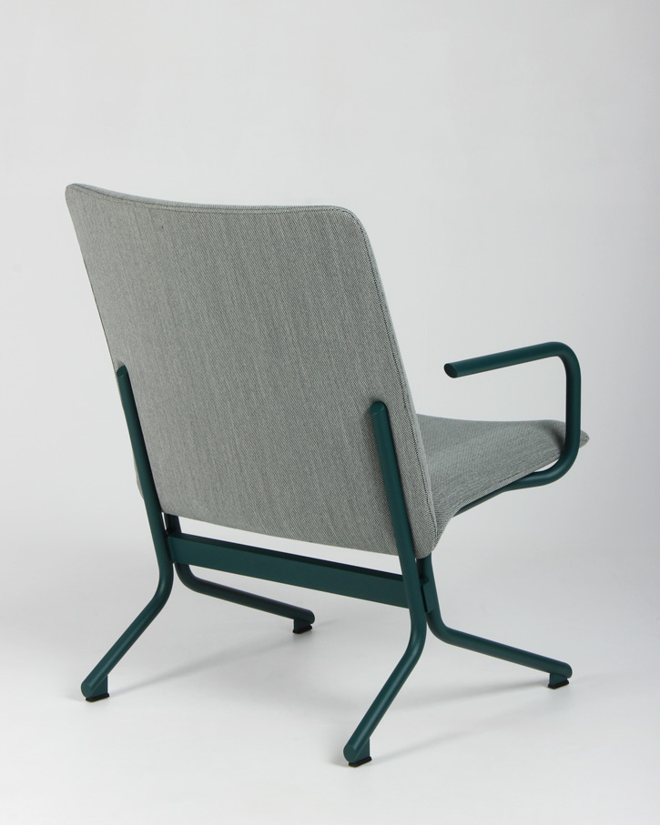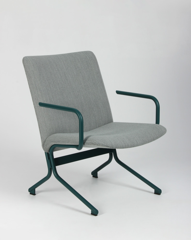 "Profim SNAP 20H loungestol polstret i sæde og ryg og betrukket med grønmeleret steelcut med flaskegrønt stel i pulverlakeret stål. Afslappet og komfortabel loungestol – perfekt til loungeområde reception eller et private hjem.
