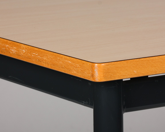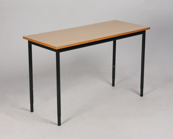 "Randers skole- og undervisningsbord med bøgelamineret bordplade med lige kanter og hjørner. Kvalitetsbordet har fuldsvejst stel og manuelt højdejusterbare ben.