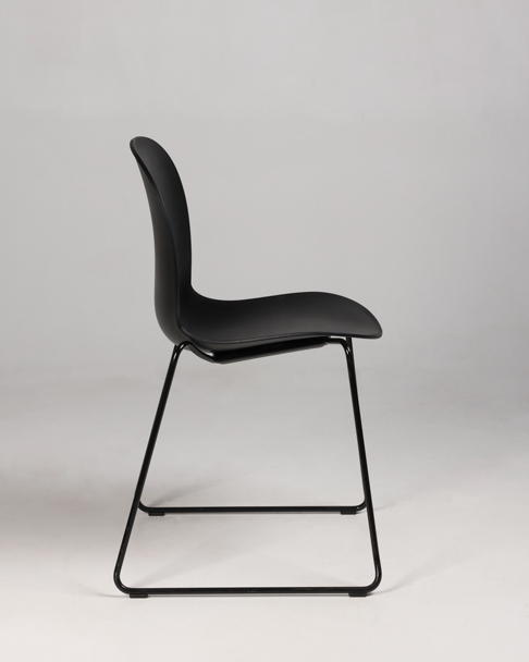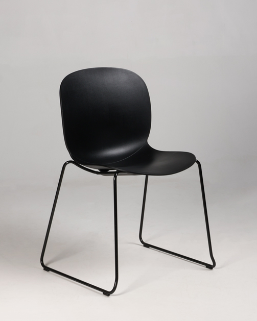 "RBM Noor 6050 stabelbar skalstol i sort PP med pulverlakeret medestel. Den formstøbte skal er produceret i et fleksibelt, rengøringsvenligt og slidstærkt materiale, der gør stolen til et godt valg fx. ved hyppig og daglig brug i kantine eller frokoststue.
