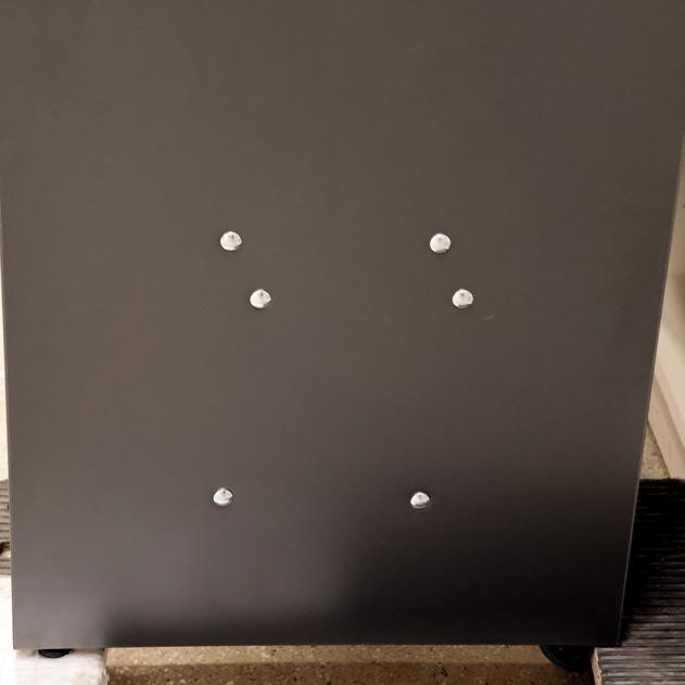 Bemærk! Nøgleskabet er understøttet af kraftige vinkelbeslag, hvor boltene ses på den udvendige side (se foto).