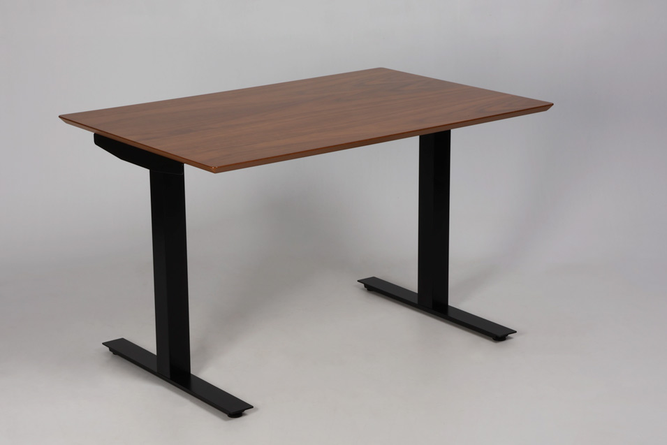 "Robust rektangulært bord på 120 x 80 cm med lakeret valnødsfineret bordplade. Velegnet til opstilling i række eller som enkeltstående enhed – fx. stationært skrivebord, undervisningsborde eller kantineborde på række.