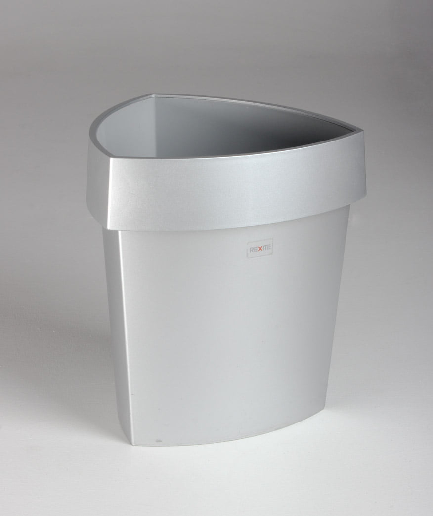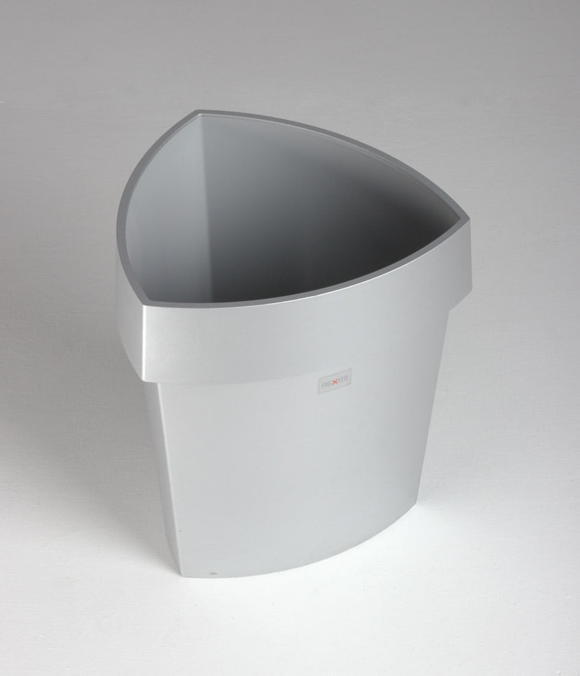 "Eco Waste Basket papirkurv fra italienske Rexite, i mat grå aluminium robust plast med ‘krave’ der holder affaldsposen på plads.