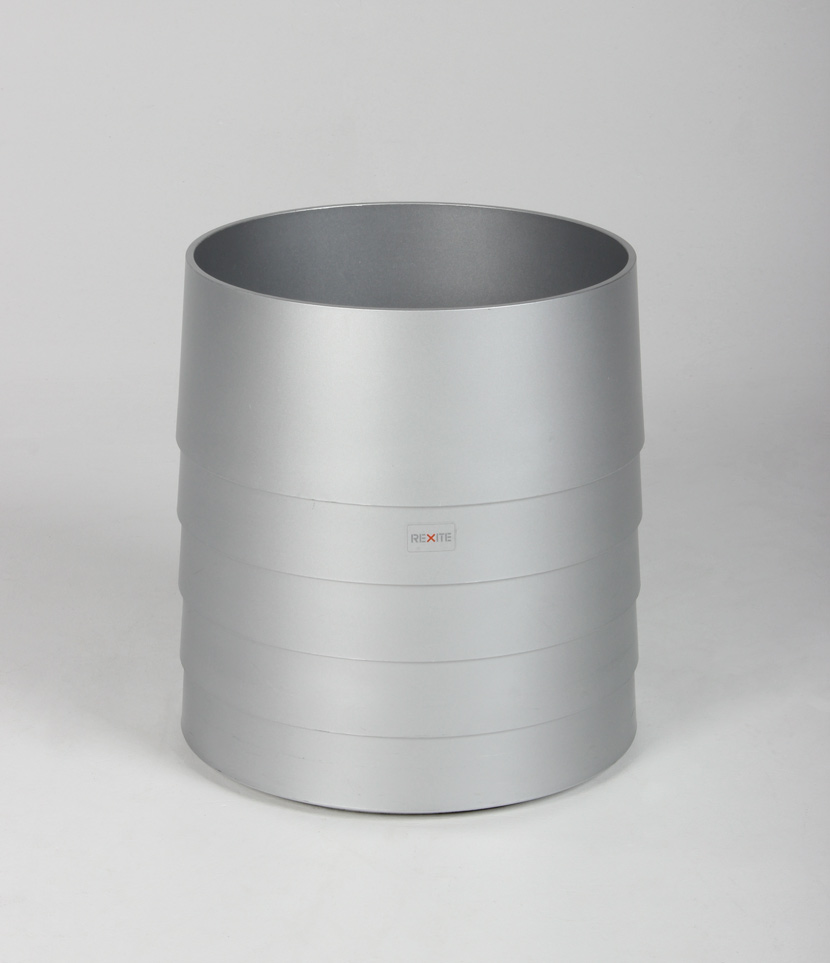 "18 liters papirkurv fra italienske Rexite, i mat grå aluminium.