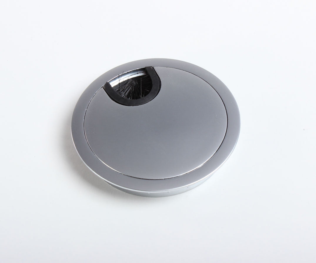 "Roset til montering i bordplade, så kabler kan føres igennem, eksempelvis ned til kabelbakken. Det efterlader et pænt, ordentligt og strømlinet udtryk, da det undgås, at kablerne hænger ned på bagsiden af bordpladen.