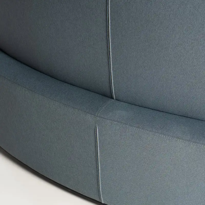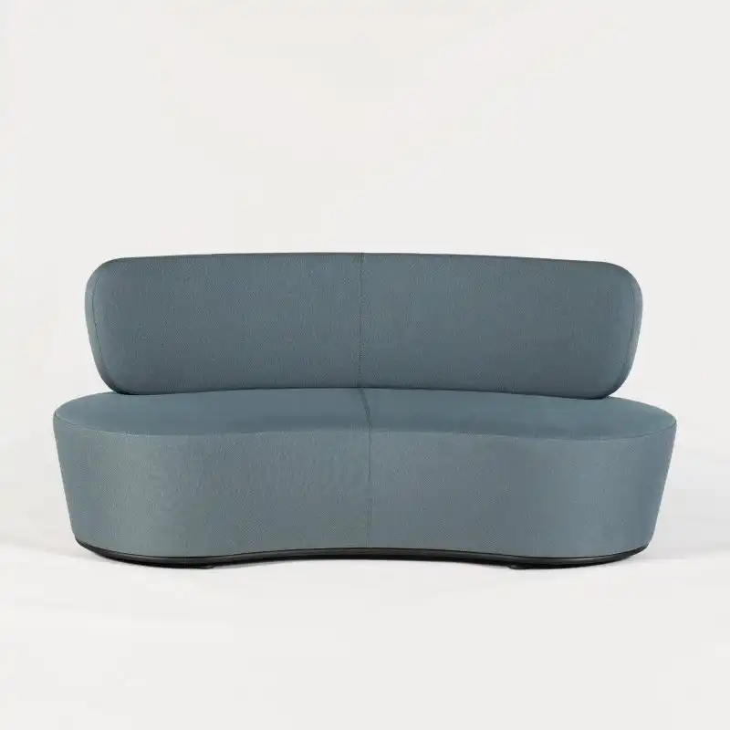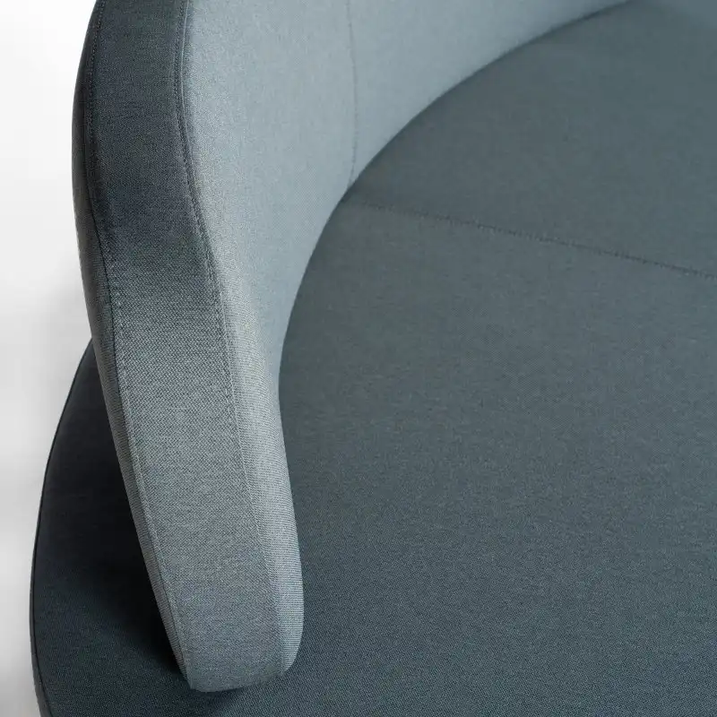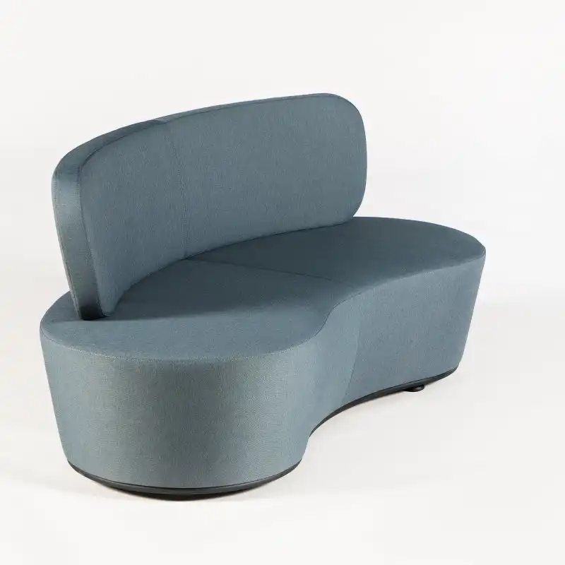 "Rumas Pinto loungesofa i støvet gråblå. Sofaen har et fast stel med stilleskruer og er udført i koldstøbt formskum, betrukket med remix.