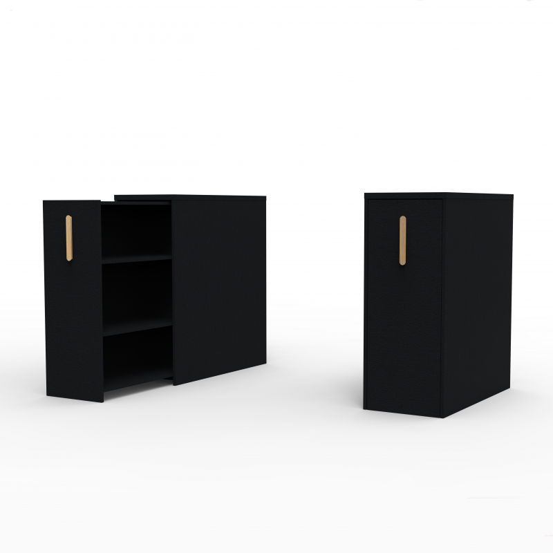 "Wype udtræksskab fra Rumas, skaber både opbevaringsplads til kontoret, og virker som en naturlig rumdeler mellem de forskellige arbejdsstationer. Wype er smart designet ved at være dobbeltvendt, dvs. at man kan bruge den fra begge sider.