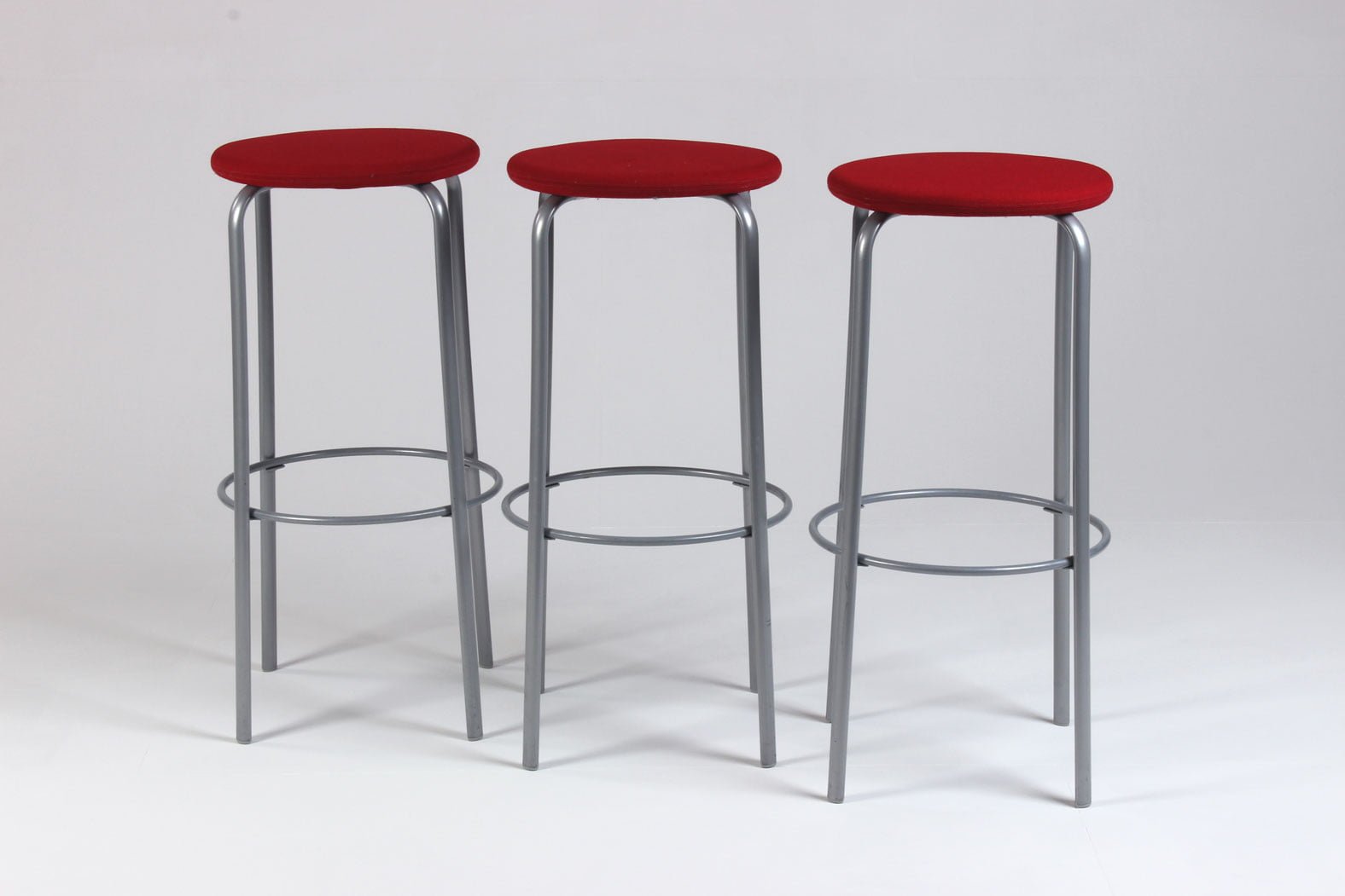 Sæt på 3 stk. Kinnarps Frisbee barstole, med rødt sæde, betrukket med xtreme.