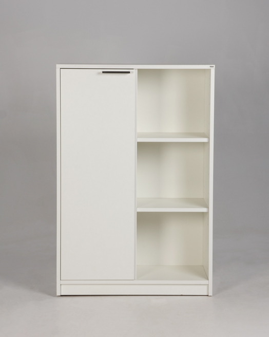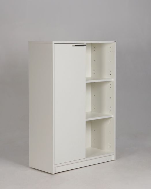 "Savir Design kombineret reol- og kontorskab i hvid laminat på sokkel.