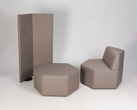 "Softrend loungesæt Manhattan Hexa, er et unikt loungesæt i beige med to sekskantede siddepladser samt matchende skillevæg.
