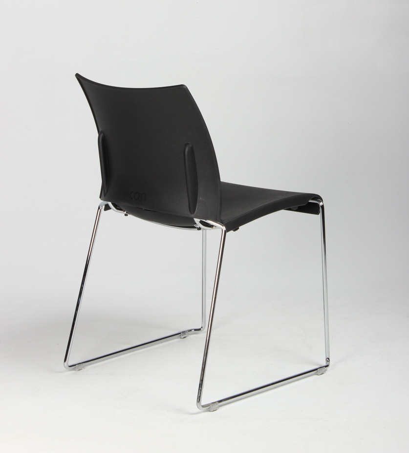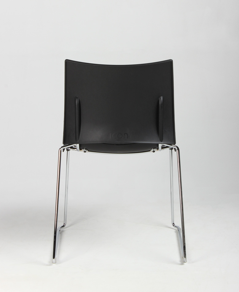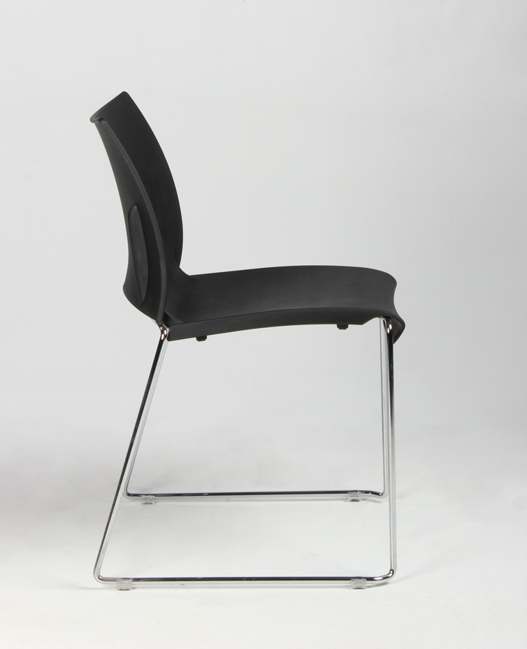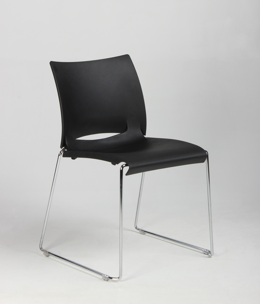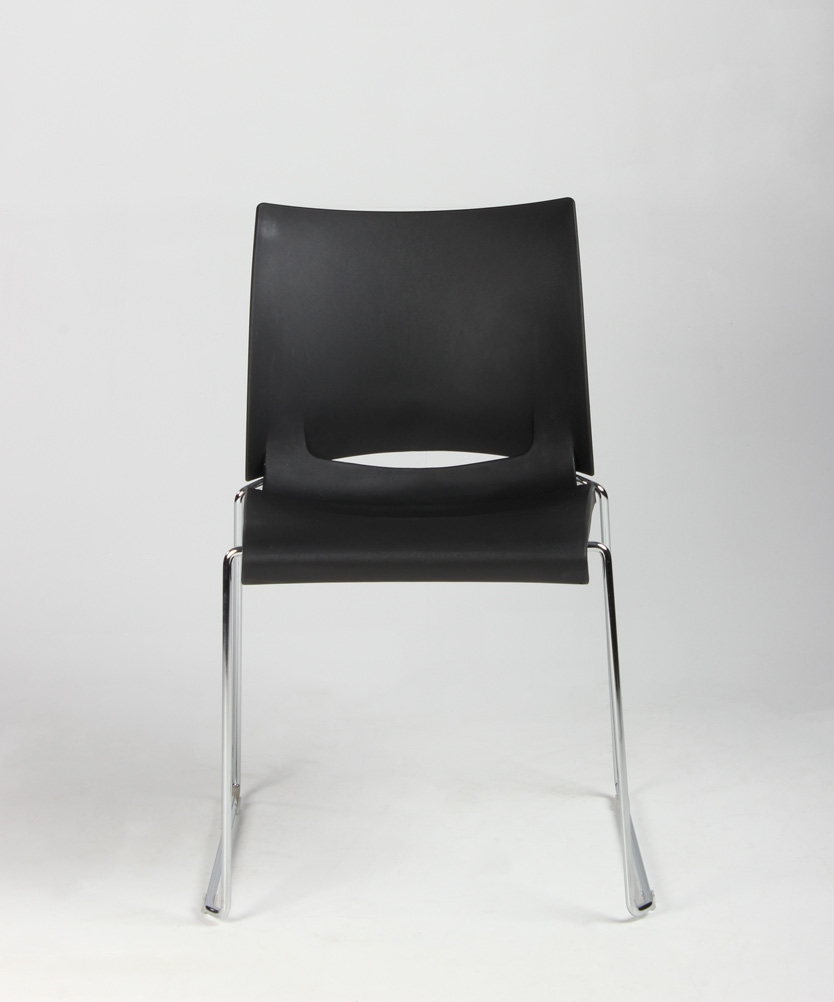 "Stabelstol i formstøbt sort polypropylen med blankforkromet medestel.