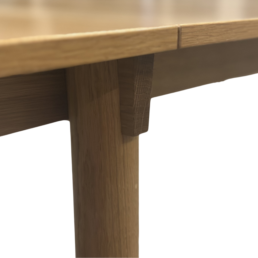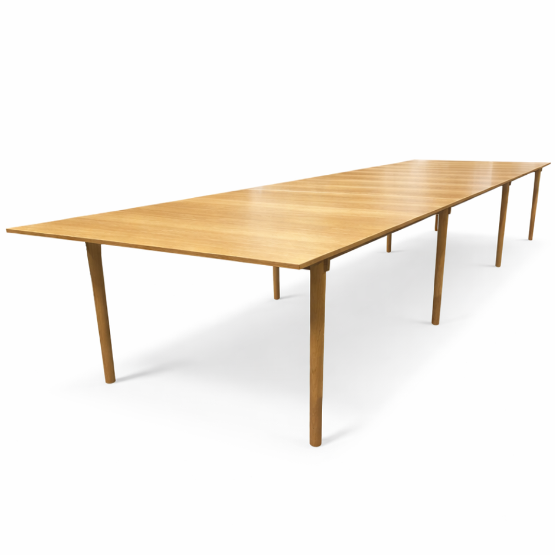 "Stort rektangulært konference- og mødebord i lakeret egefinér med massive koniske egetræsben.