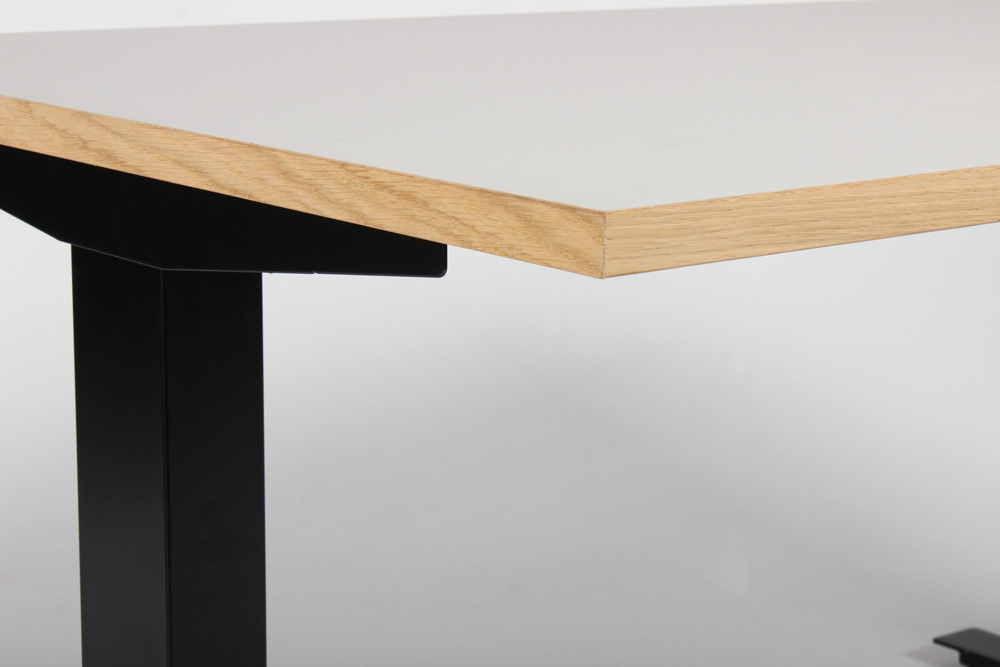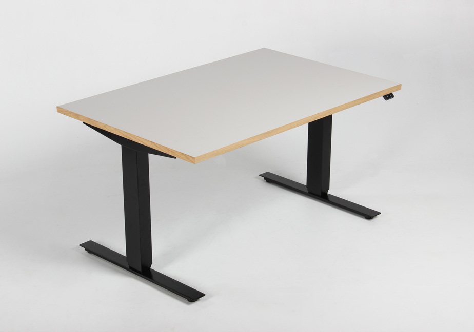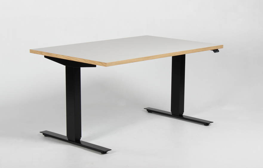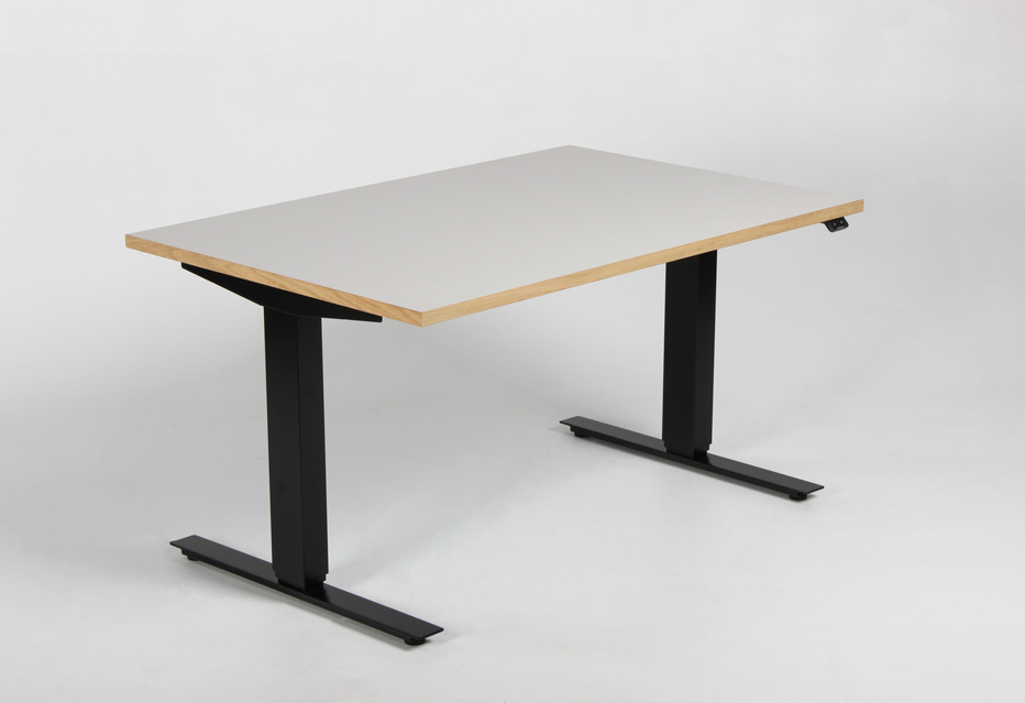"Flot Swedstyle hæve-sænkebord med lys grå linoleumsbordplade med egetræskant.