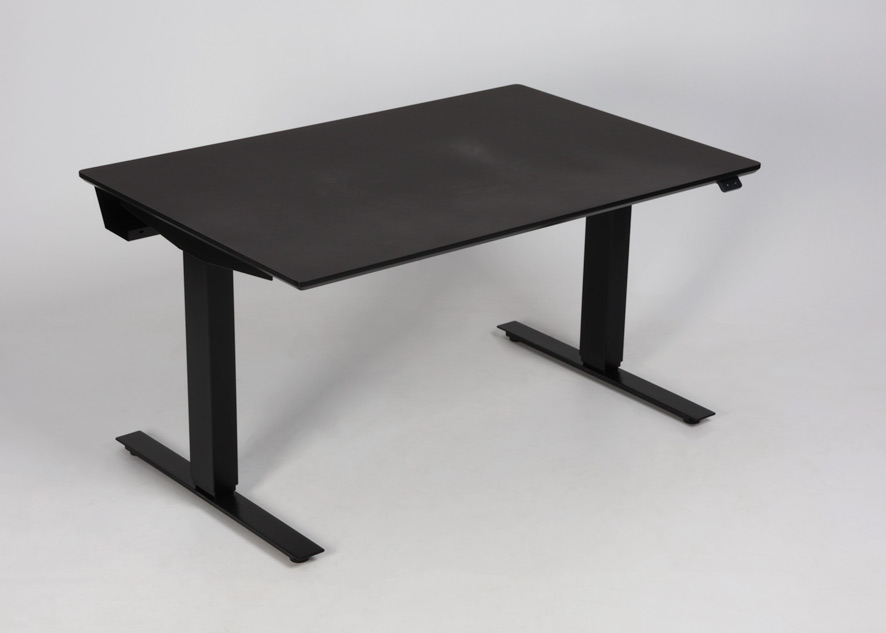 "Swedstyle hæve sænkebord bestående af en 120 x 80 cm sort linoleumsbordplade og sort stel. Det lille hæve-sænkebord er perfekt til mindre kontorer eller hjemmearbejdspladsen. Det højdejusterbare stel, giver mulighed for at skifte mellem siddende og stående positioner og passer med sit enkle design ind i enhver indretning.