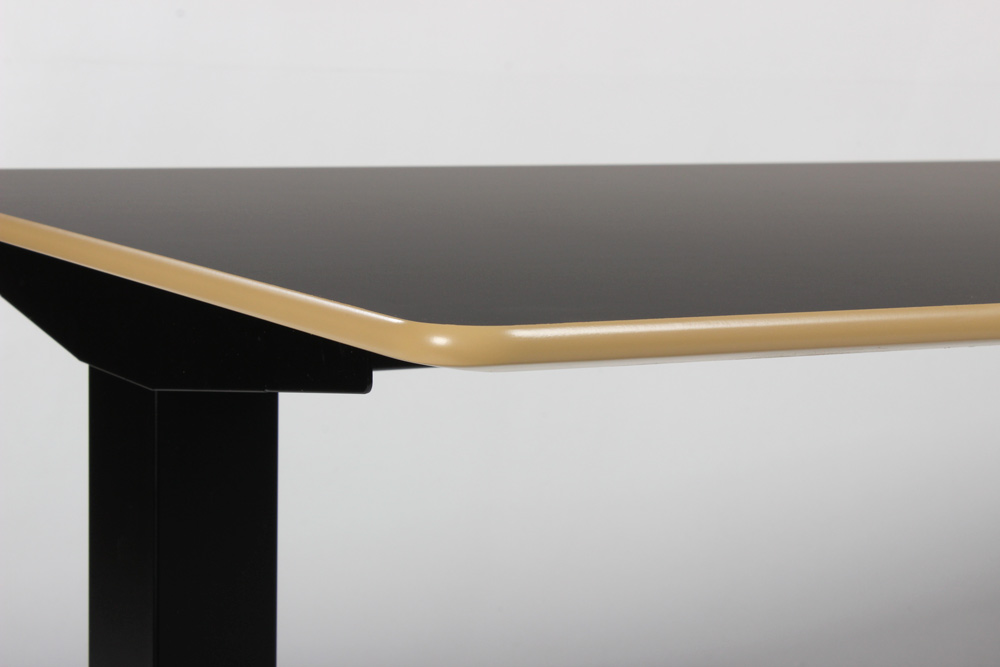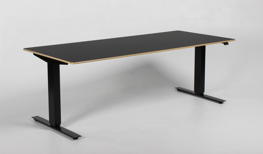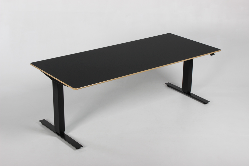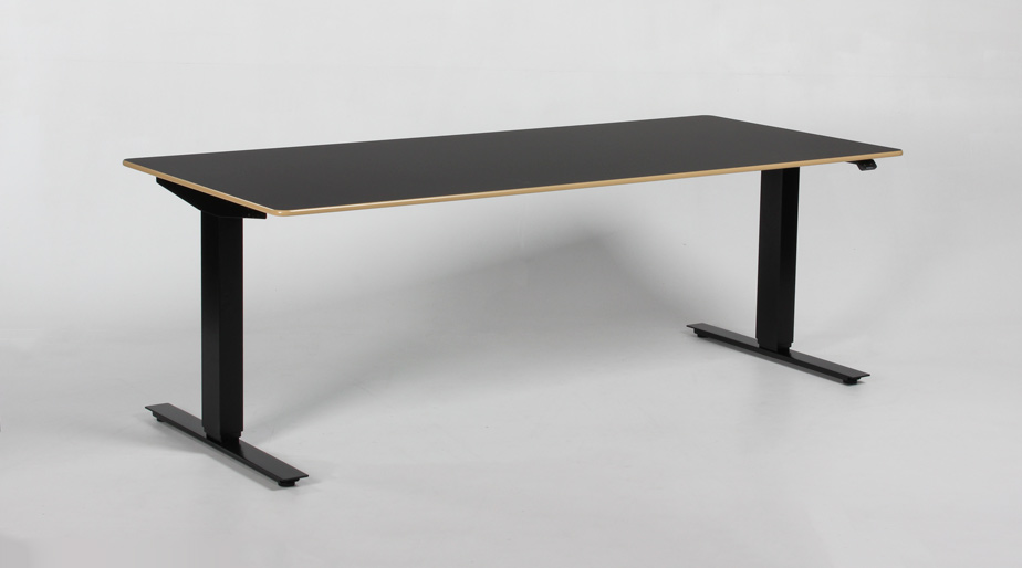 "Swedstyle hæve sænkebord med bordplade i sort nano-laminat med beige kant.