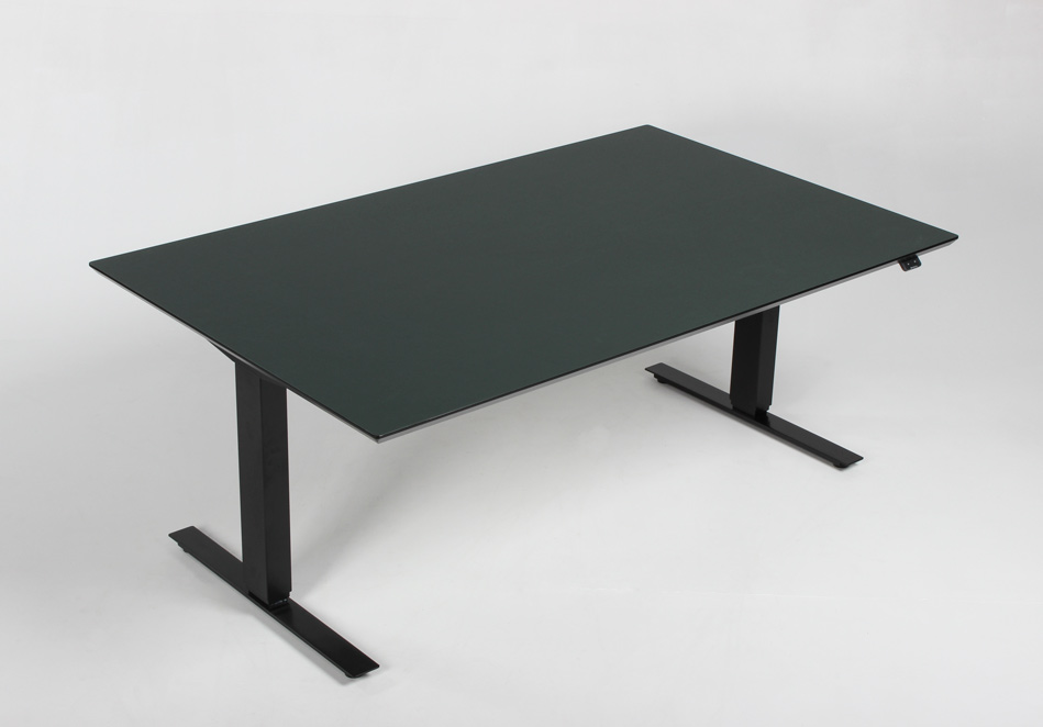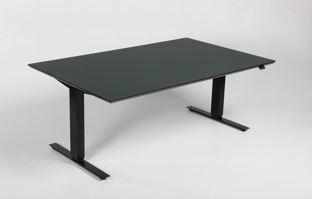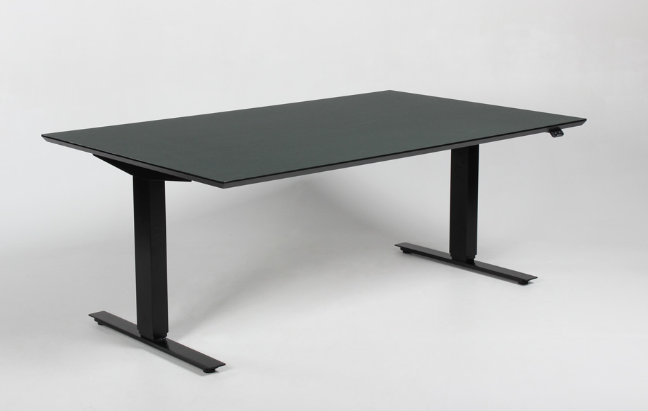 Bordpladens størrelse gør bordet anvendeligt som både hæve sænke-skrivebord, mens med det højdejusterbare elektriske stel, kan hæves til almindelig højde hvortil traditionelle mødestole kan bruges eller som højbord omgivet af barstole.