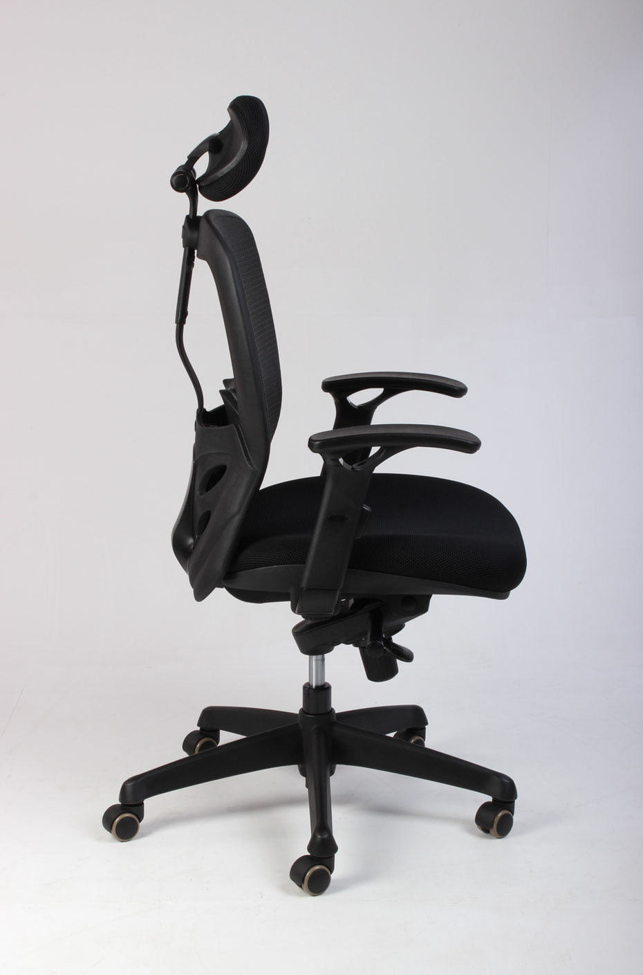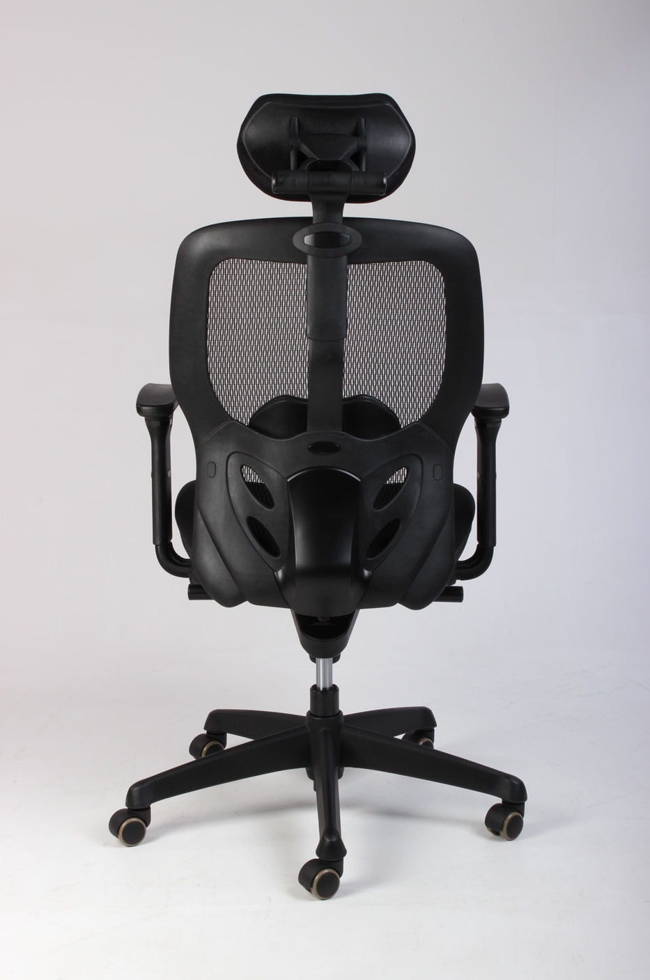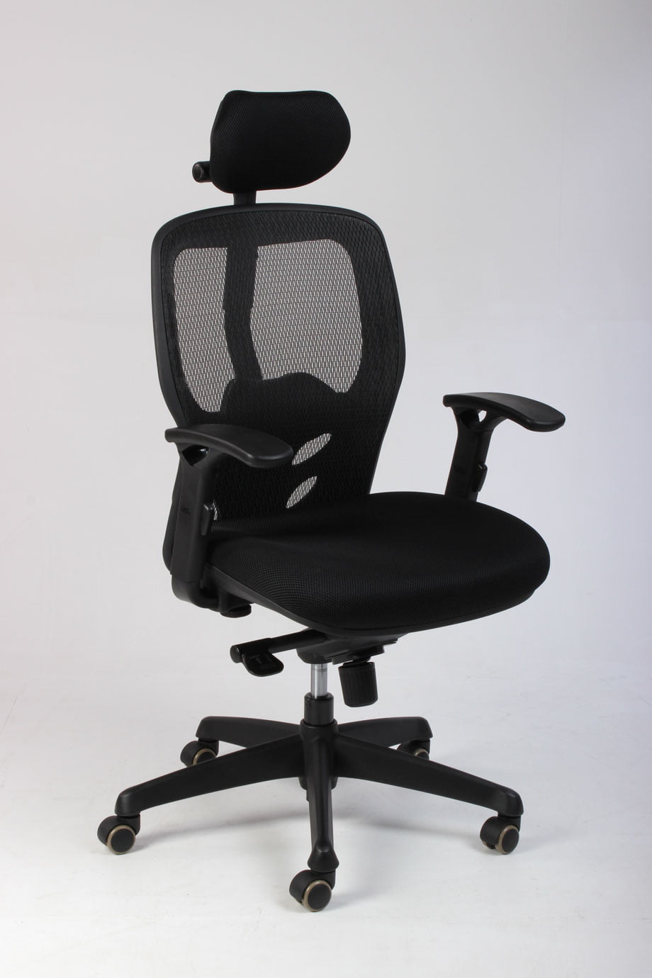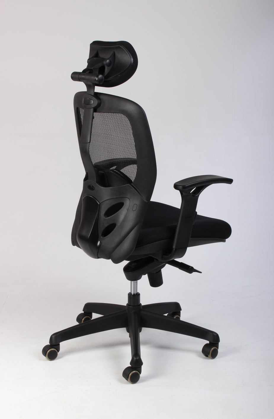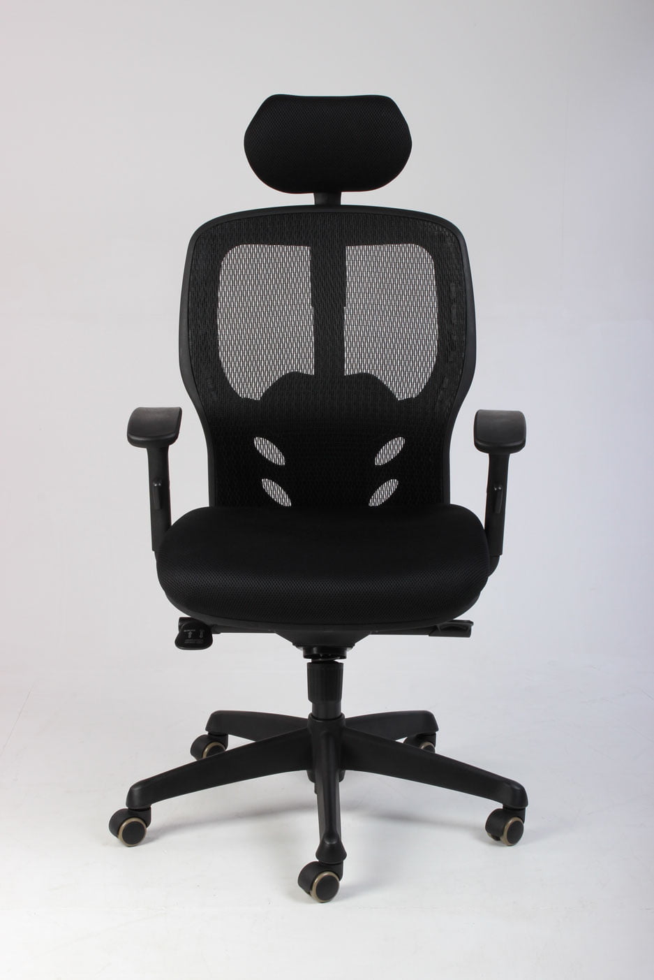 Både armlæn og nakkestøtte kan justeres i højde og vinkel, ligesom synkron-funktionen kan fastlåses i seks trin. Netryggen kan også indstilles, så der gives optimal støtte til lænden.