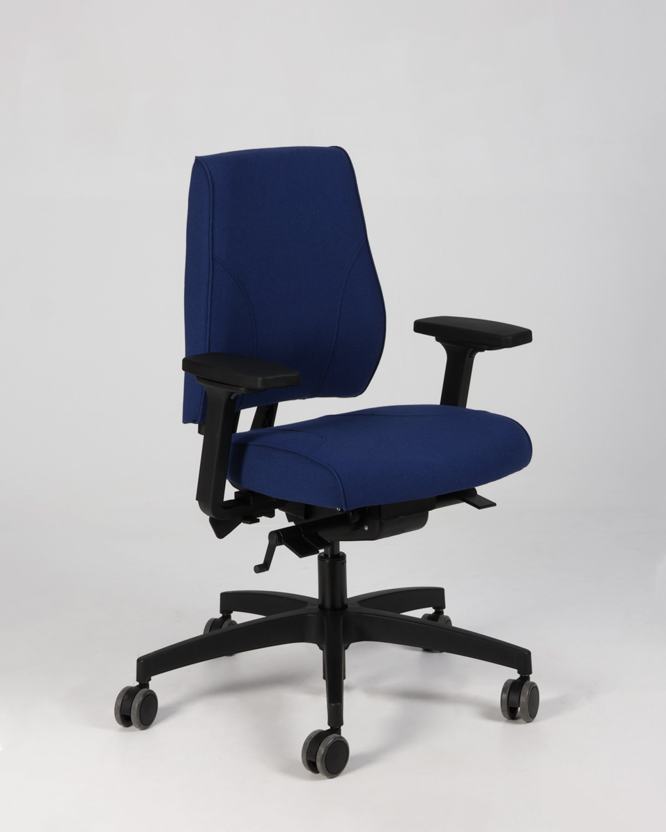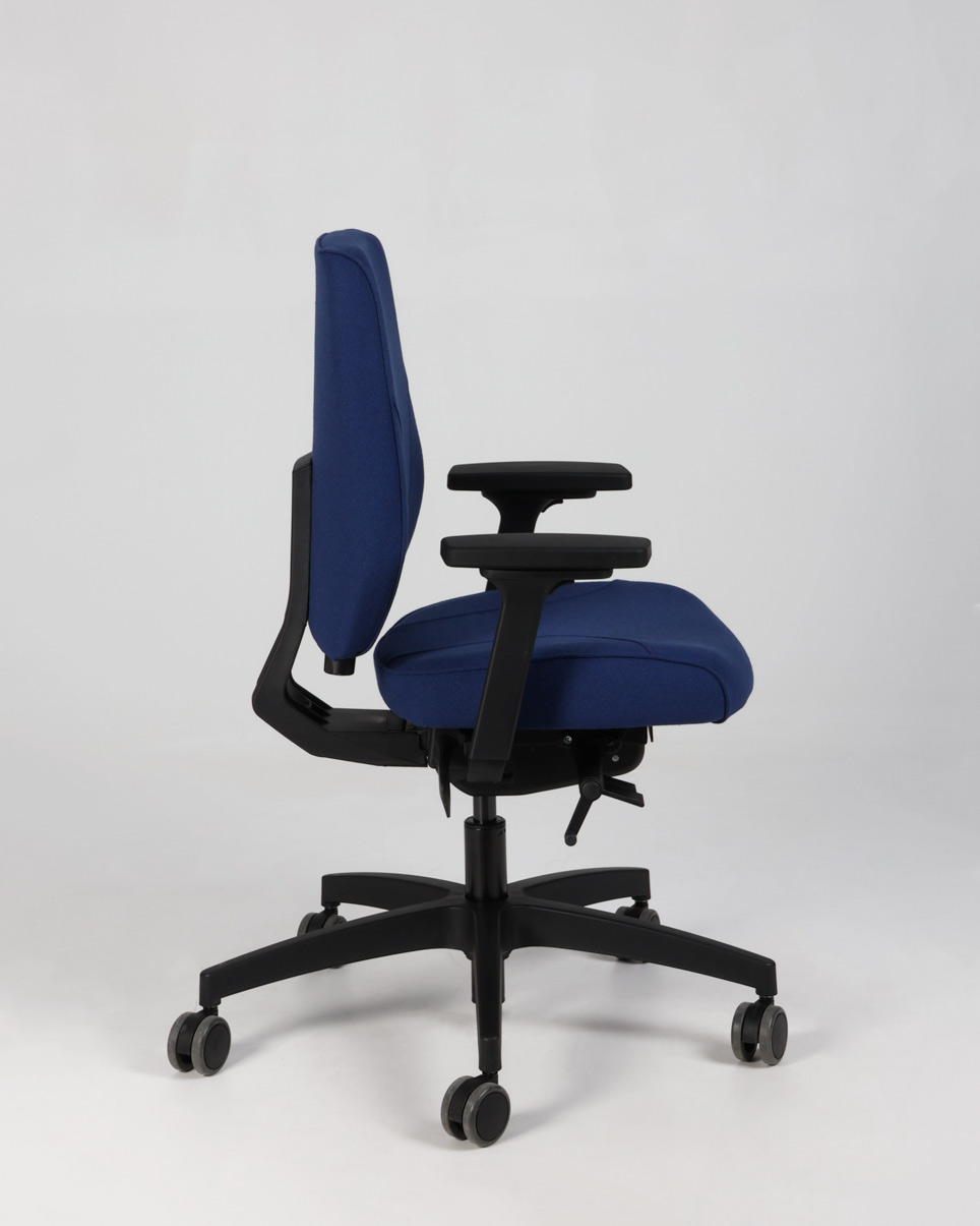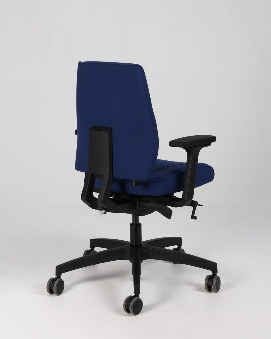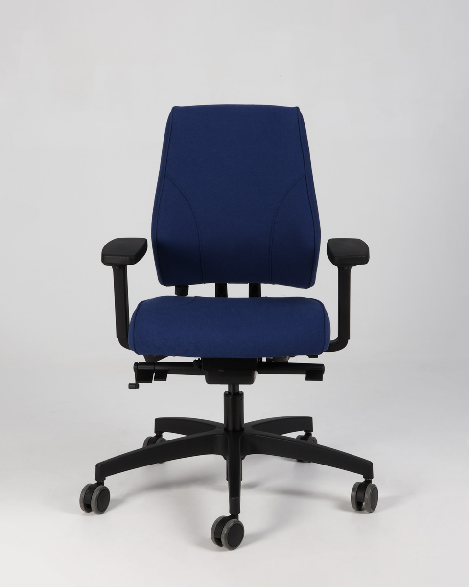 "Tronhill Magna Manager kontorstol med 3D armlæn, fuldpolstret og betrukket med blå møbeltekstil. Stol til kontoret med mange indstillingsmuligheder, der nemt kan tilpasses brugerens individuelle behov.