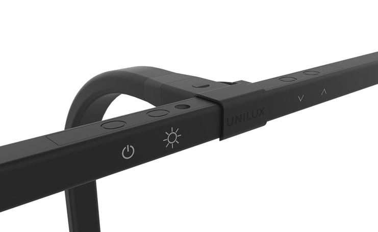 "Unilux Strata LED bordlampe i sort til bordplademontering. Designet gør, at den ikke optager plads på arbejdsbordet og med sit brede hoved, oplyser den asymmetrisk og uproblematisk en bred arbejdsplads med flere skærme. Lampen har desuden flere intelligente features som; automatisk tilpasning ift. lysintensitet i lokalet, manuel tilpasning samt farvetemperatur. Integreret LED-pære med en effekt på 12,7 W, der ikke kan udskiftes.