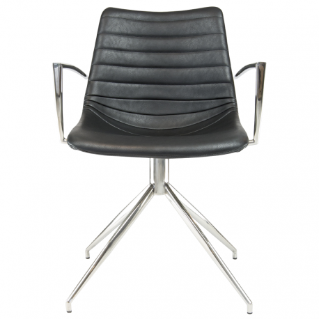 "Ventus Down konferencestol med polerede armlæn og drejestel. Stolen er polstret i sæde og ryg og betrukket med sort vintage PU-læder med kanalsyninger. Lækker stol med et eksklusivt udtryk, til enten skrivebordet på hjemmekontoret eller omkring firmaets mødebord.
