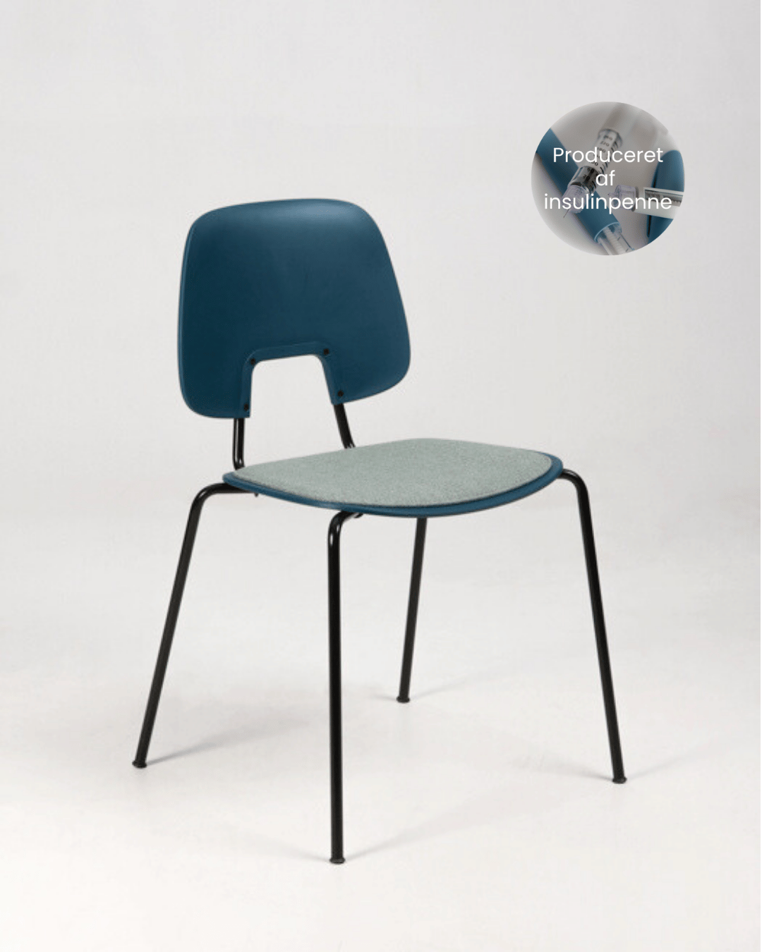 "R.U.M. Original i Pharma Blue ReWool er en robust og elegant stol, der er fremstillet af genanvendt plast fra brugte farmaceutiske ressourcer – primært insulinpenne. Ved at indsamle og genanvende dette materiale reduceres affald og giver nyt liv til værdifulde sundhedsprodukter. Det kræver affaldsplast fra hele 142 insulinpenne at fremstille én stol. Alt vores farmaceutiske affald indsamles i Danmark.