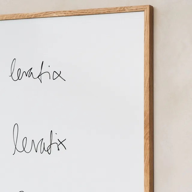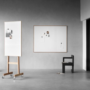 "Whiteboardtavle med træramme af massiv eg – en flot varm kontrast til den hvide skriveoverflade i stål. Rammen er samlet i gering og er en elegant detalje, der står flot sammen med de enkle og rene linjer. Velegnet i mødelokalet, på kontoret eller i undervisningsmiljøet.